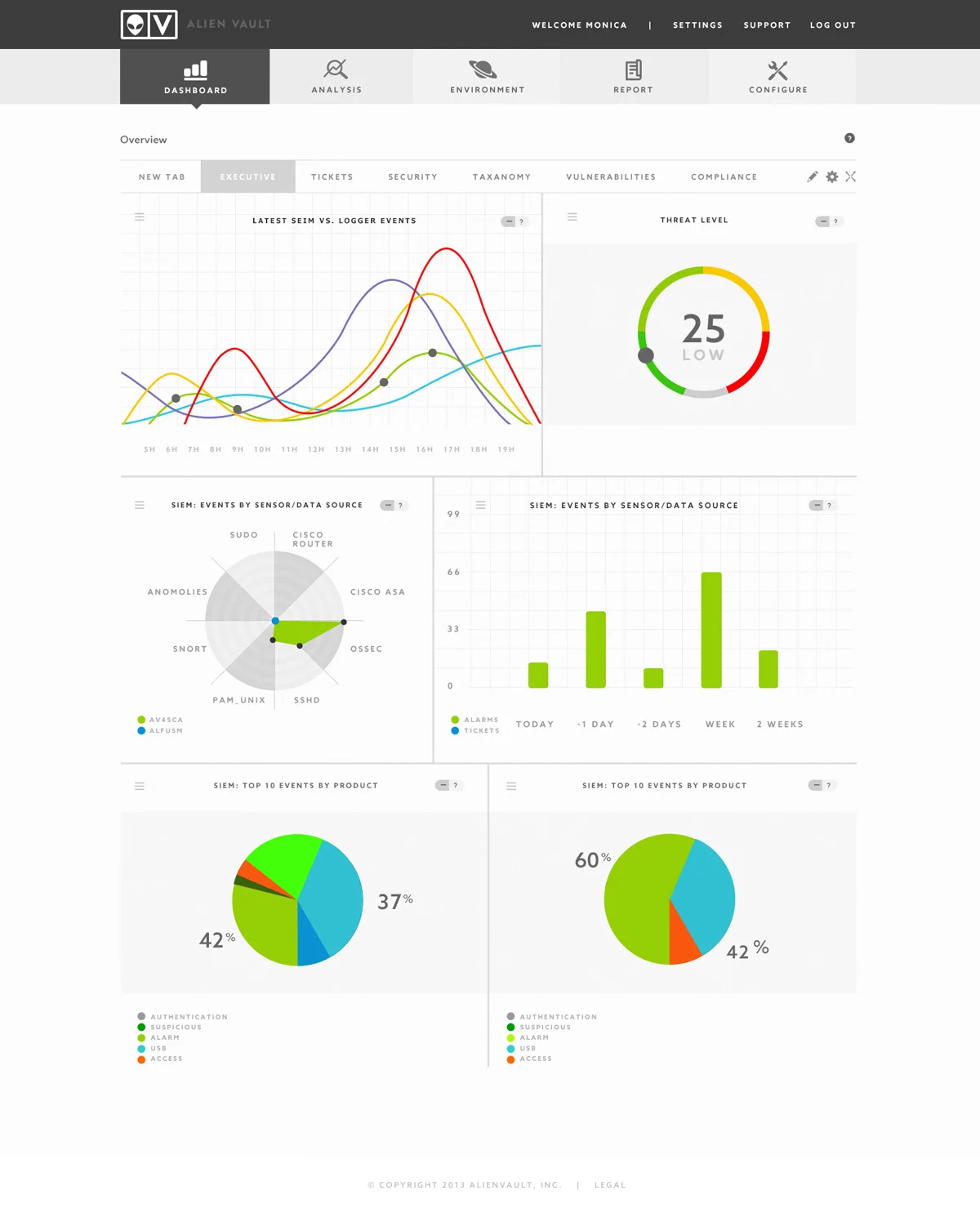 Alienvault , A threat detection and compliance management company sought assistance in redesigning their Unified Security Management system interface. My task was to help my team create a new interface with a clean and modern look.