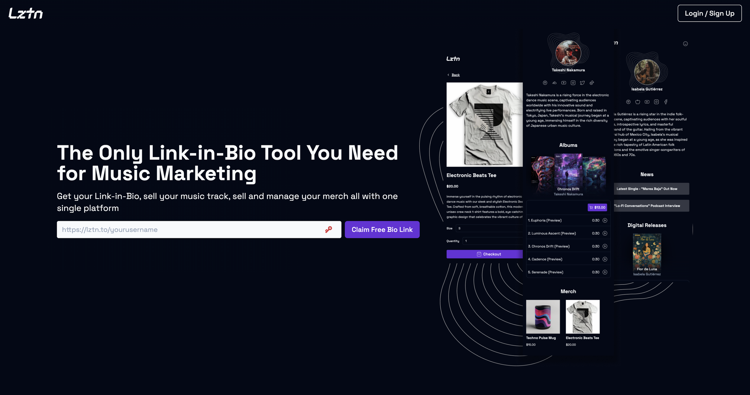 LZTN | All-in-one music bio site builder for music marketing